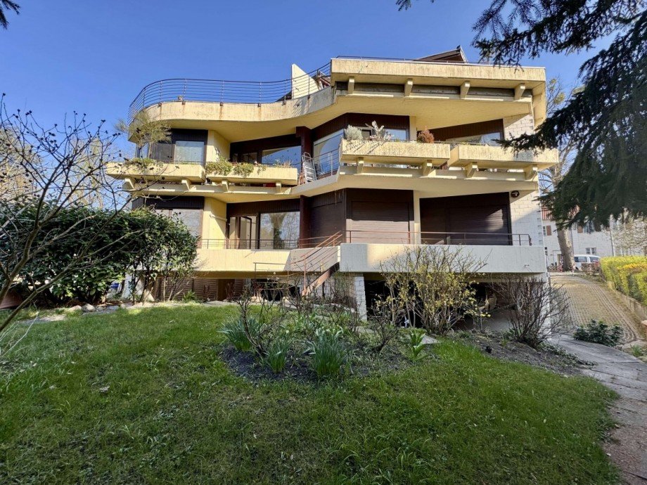The expansive, green property surrounding the building creates a peaceful and nature-oriented environment. A convenient parking space is also available directly on the premises.